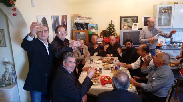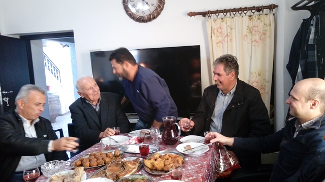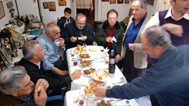 Από νωρίς το πρωί κάθε σπίτι και νοικοκυρά έχουν ετοιμάσει μεζέδες και κεράσματα για να υποδεχτούν τον κόσμο καθώς και κάθε νοικοκύρης έχει έτοιμο να προσφέρει το εκλεκτό κρασί του.