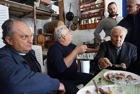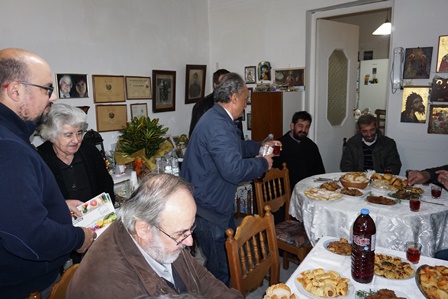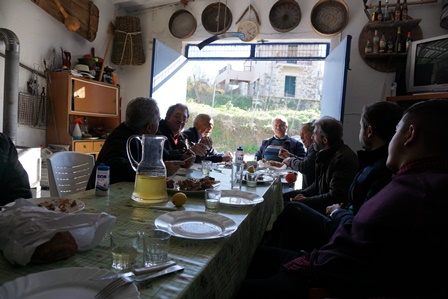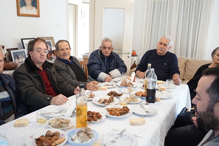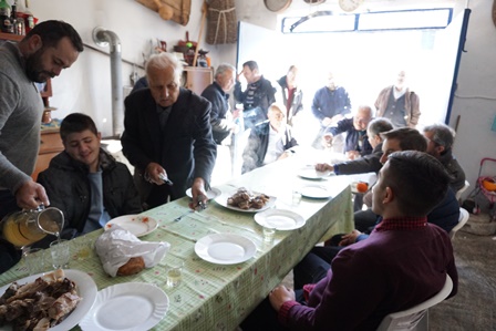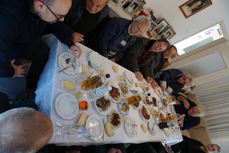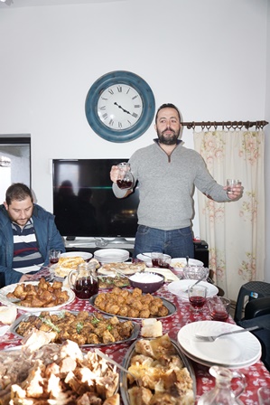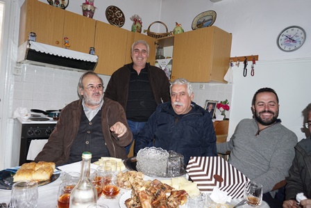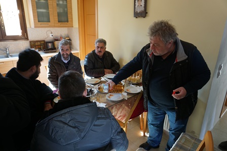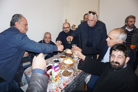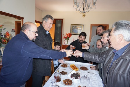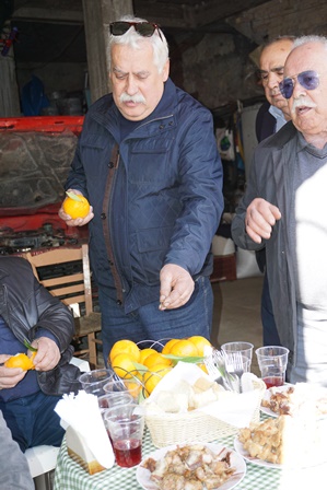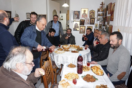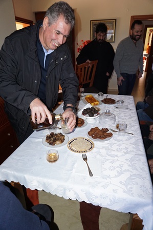 Από νωρίς το πρωί κάθε σπίτι και νοικοκυρά έχουν ετοιμάσει μεζέδες και κεράσματα για να υποδεχτούν τον κόσμο καθώς και κάθε νοικοκύρης έχει έτοιμο να προσφέρει το εκλεκτό κρασί του.